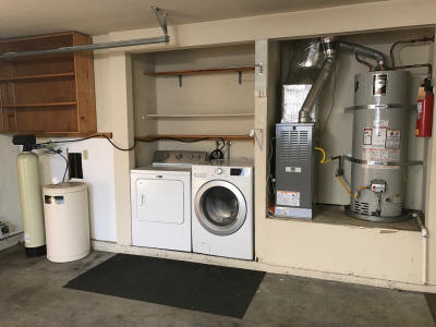 Garage: The large, finished attached garage has an electronic overhead door opener & offers easy access to a new forced-air gas furnace, water heater, laundry hookups, water softener system, and pull-down stairs for extra attic storage.