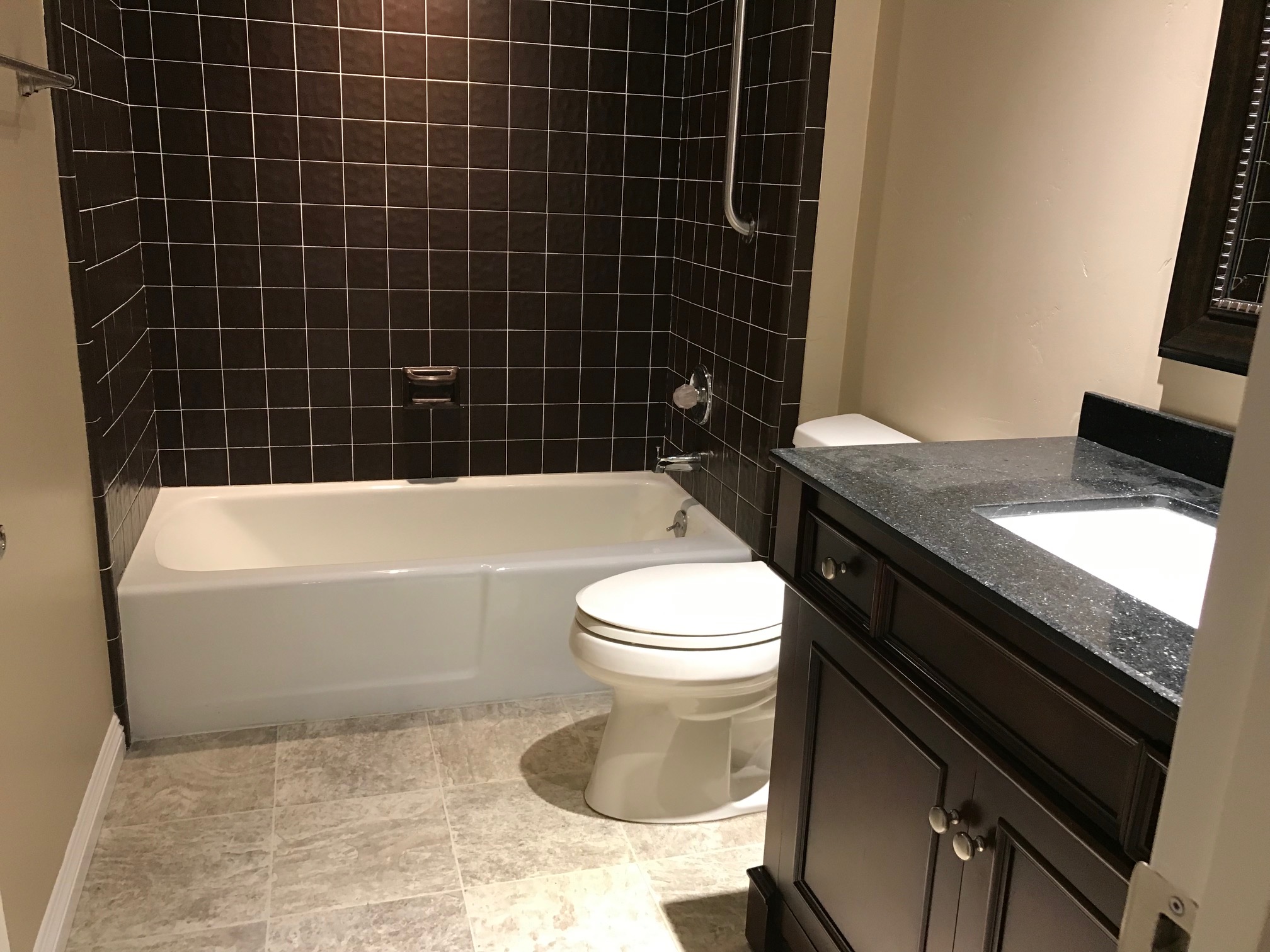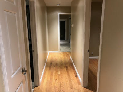 Additional Features: Recessed lighting, panel doors, dual-pane windows with shutters throughout, and built-in audio speaker wiring to living room & master bedroom. The hall bath includes a granite top vanity and a tiled shower over the tub.